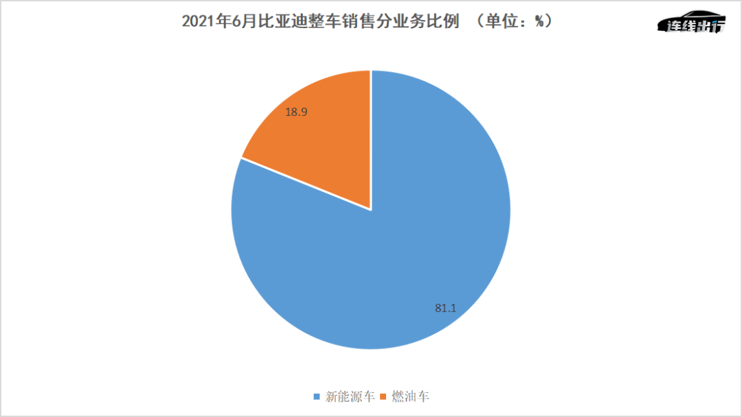2021年6月比亚迪整车销售分业务比例,数据来源于公开数据,连线出行制图