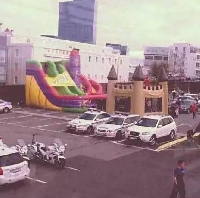 ▲甚至游乐场的气球要打起都能招来几辆警车帮忙