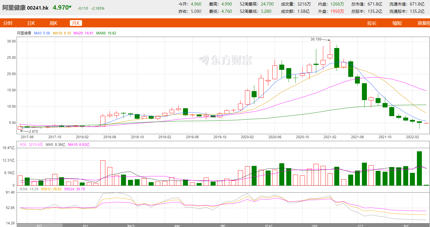 其中,阿里健康(香港中概股:00241)的核心业务在于医药电商,可分为自营业务和电商平台两大板块。借助于阿里健康大药房、阿里健康海外旗舰店、天猫医药平台以及医药020开展全线运营。除布局线上外,阿里健康先后通过入股玉平民大药房、华人健康、贵州一树、德生堂等多家线下连锁药店,打通线上和线下全渠道场景。