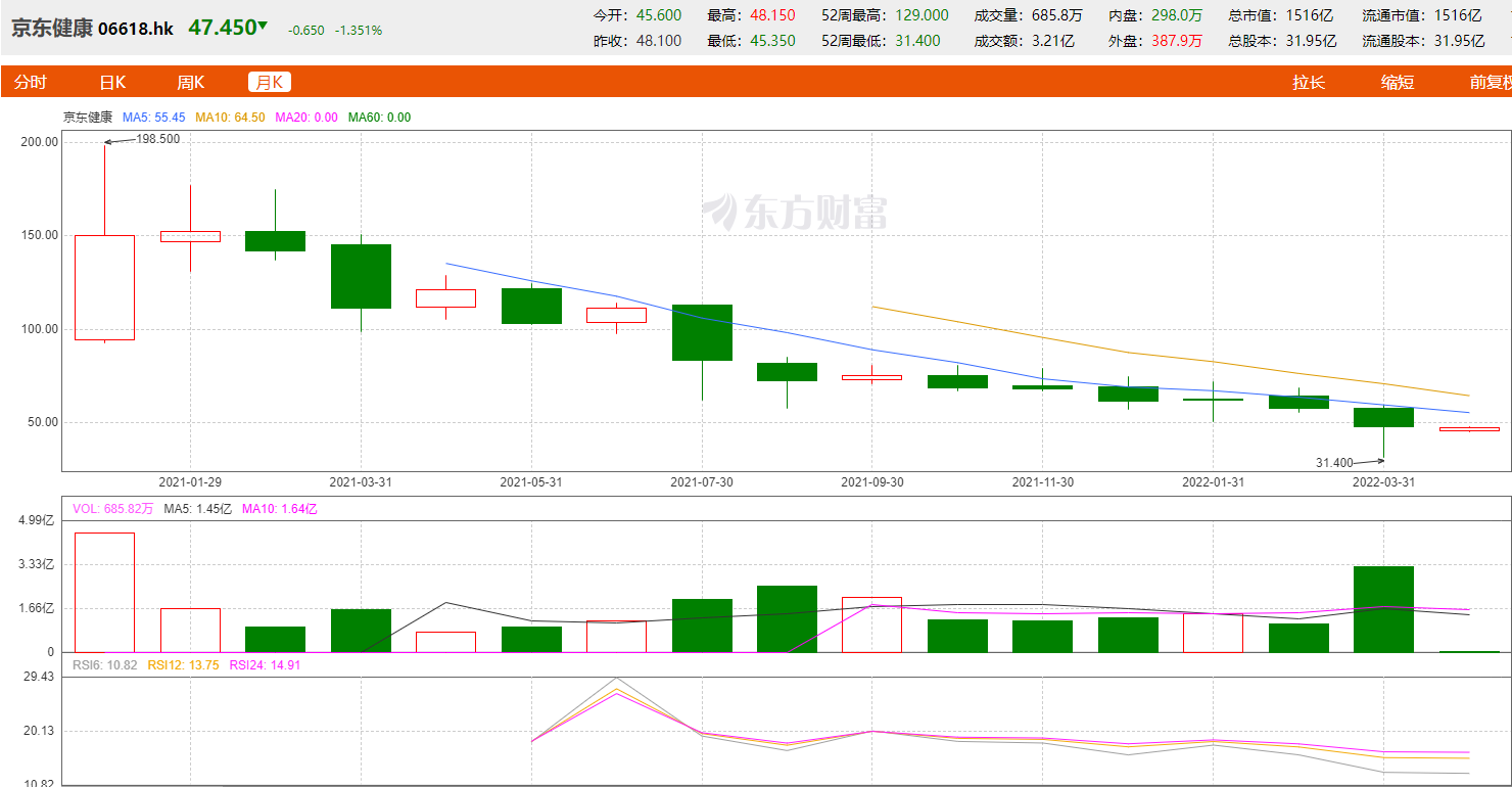 京东健康(香港中概股:06618)主要从事药品、医疗器械以及泛健康商品的批发以及零售,其业务主要通过自营+平台+全渠道这三种模式。其中,自营主要依托于京东大药房、京东健康联盟大药房、无人智能药柜等渠道。目前京东健康商品种类有2000多种,合作商家1.2万家。年底活跃用户1.23亿。