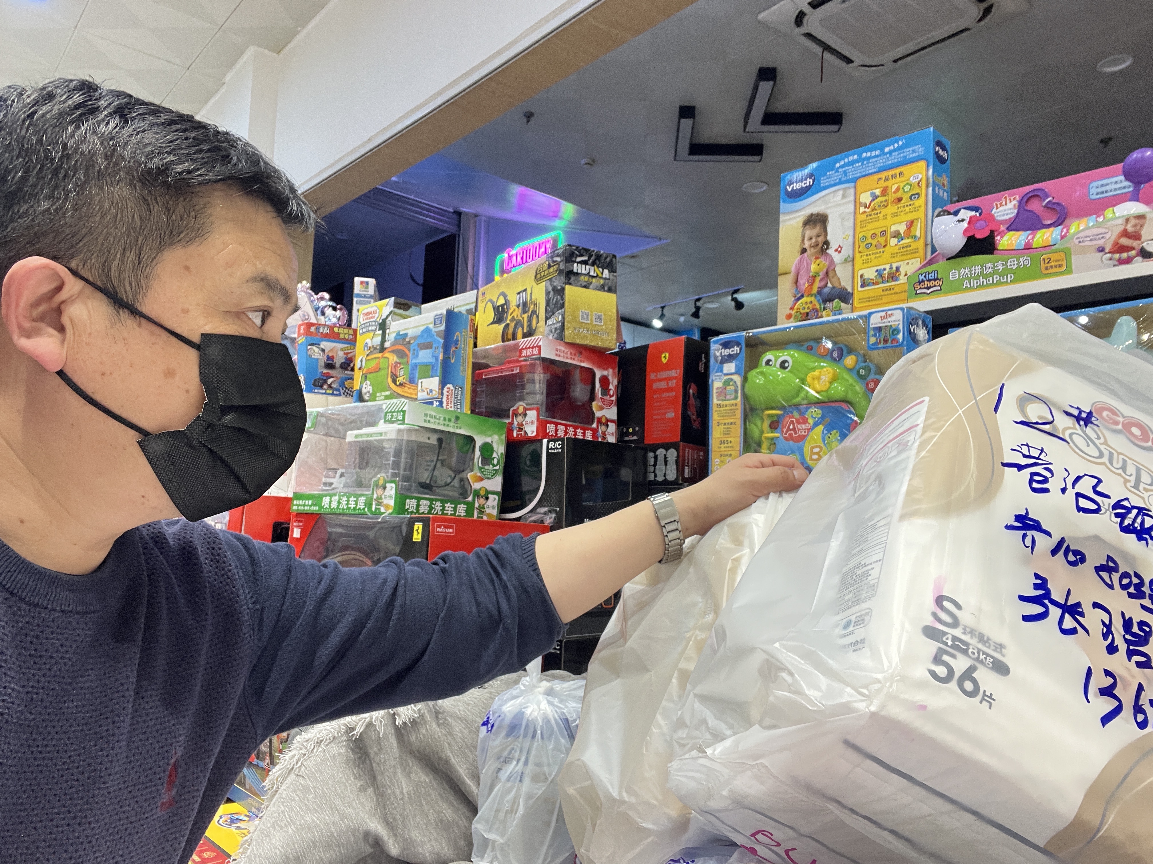 “现在最缺的是奶粉,吃的最重要,其次是尿布。”朱建飞说,“其实在疫情前我从上海购买了几十万的货过来,两天就卖掉80%。人家一箱一买,我最多给他们两筒,我和他们说要照顾到大家。”