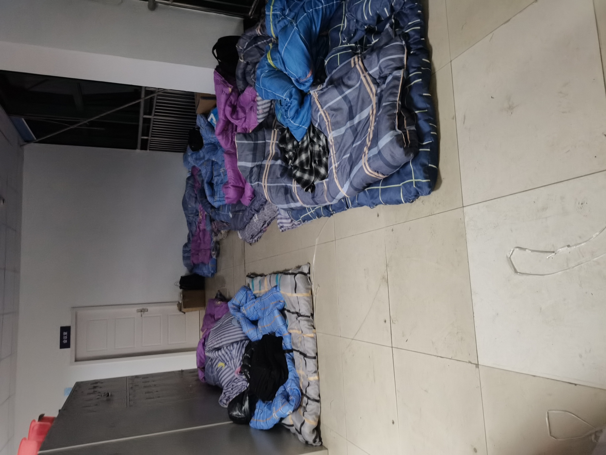 由于闭环管理的要求和巨大的工作量,他和同事们都在仓库解决吃住。公司安排了盒饭和被子,晚上,七八个人住在办公区的同一个空间里,过起了“大通铺”的日子。