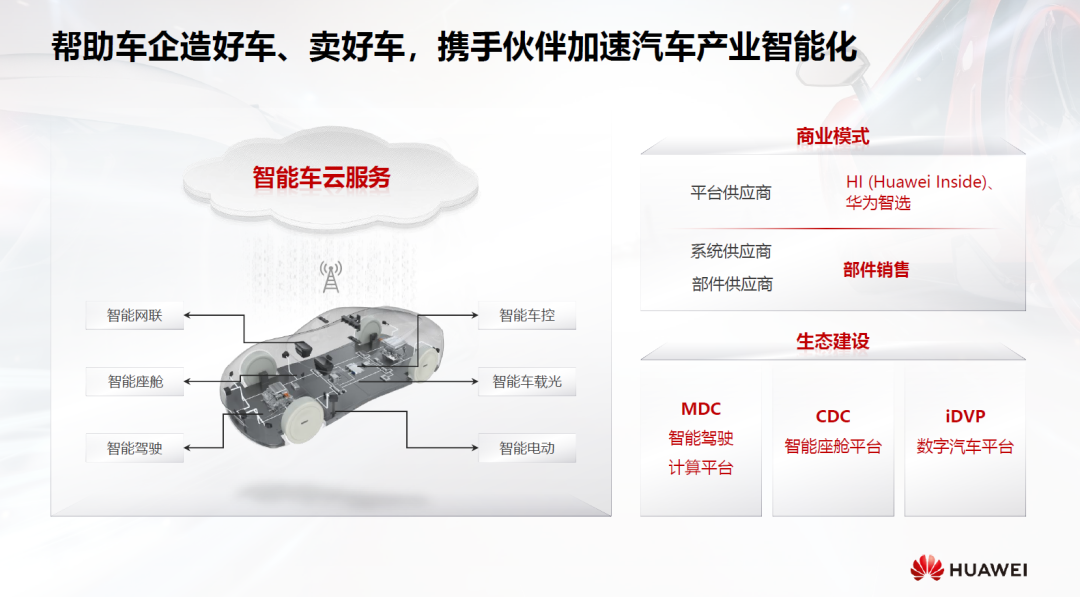 华为推广智能汽车解决方案的方式采用:平台 + 生态战略。