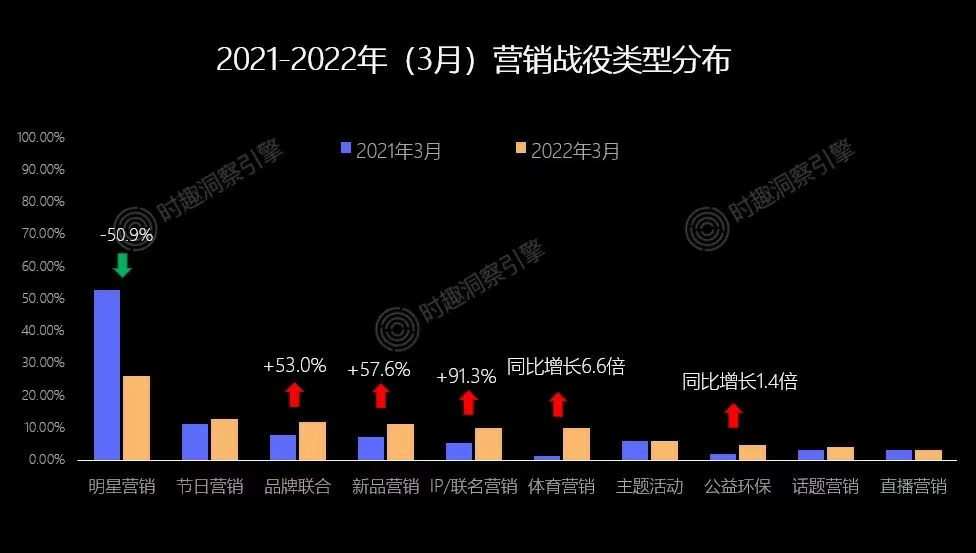 时趣洞察引擎的一组数据显示,2022年3月,明星营销事件同比2021年大幅下滑超50%。要知道主打防晒传播的3月一直是美妆品牌们年度营销热季。