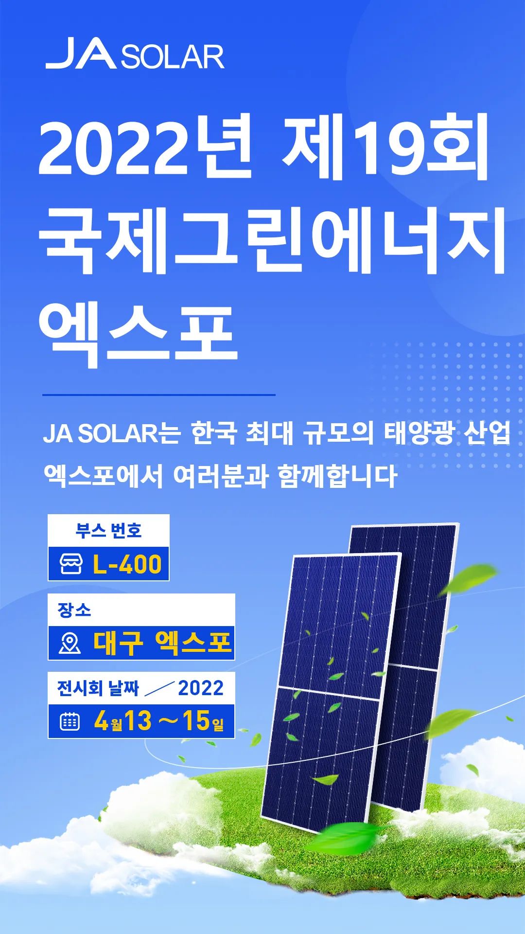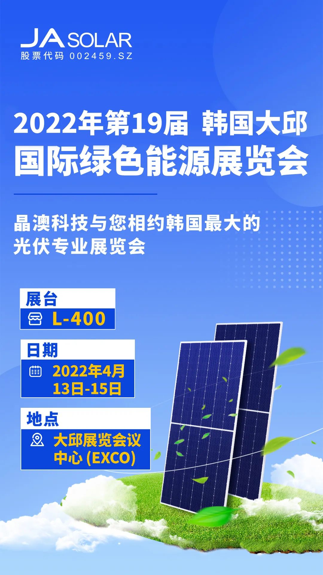 届时,晶澳科技——国内首家获得韩国亲环境认证的光伏企业,将携多款高效组件产品亮相L-400展台,欢迎莅临参观!