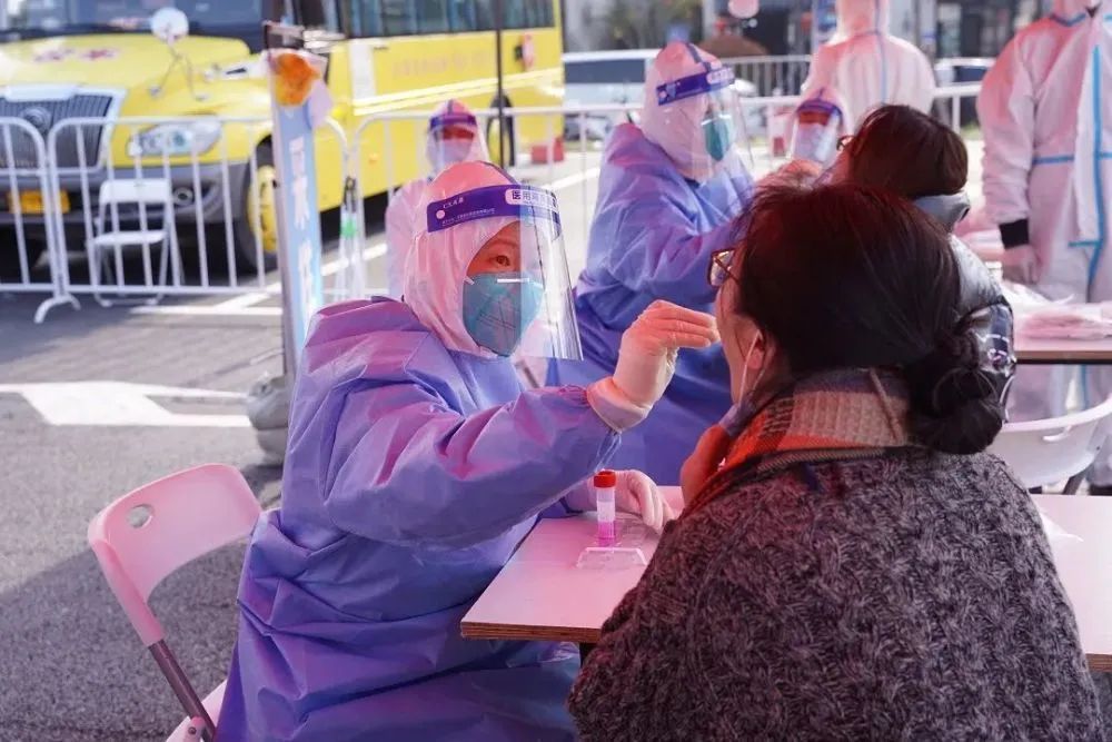 身穿白色镶蓝条防护服的志愿者早早守在凛冽的风雨中,大声地维持秩序,声嘶力竭地提醒前来做核酸的居民们相互之间保持距离、戴好口罩、提前拿出手机打开核酸检测码……