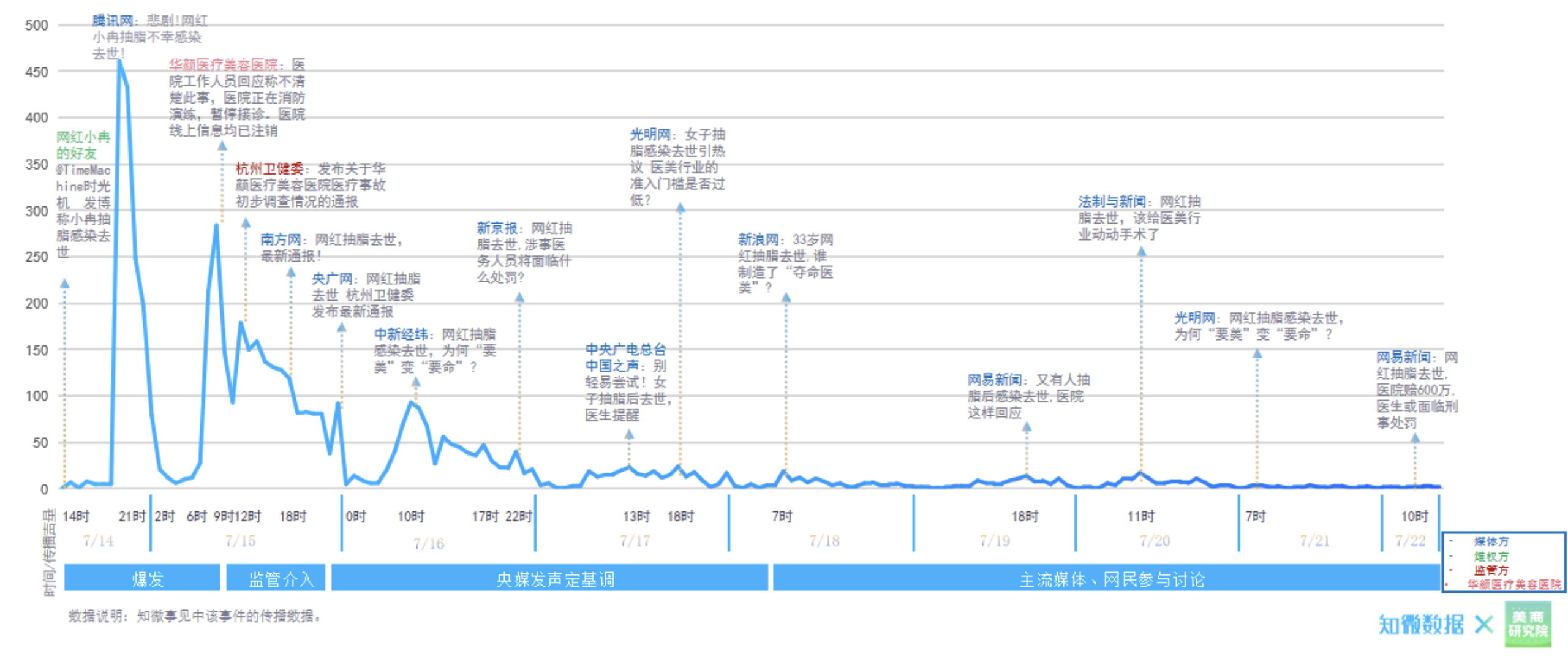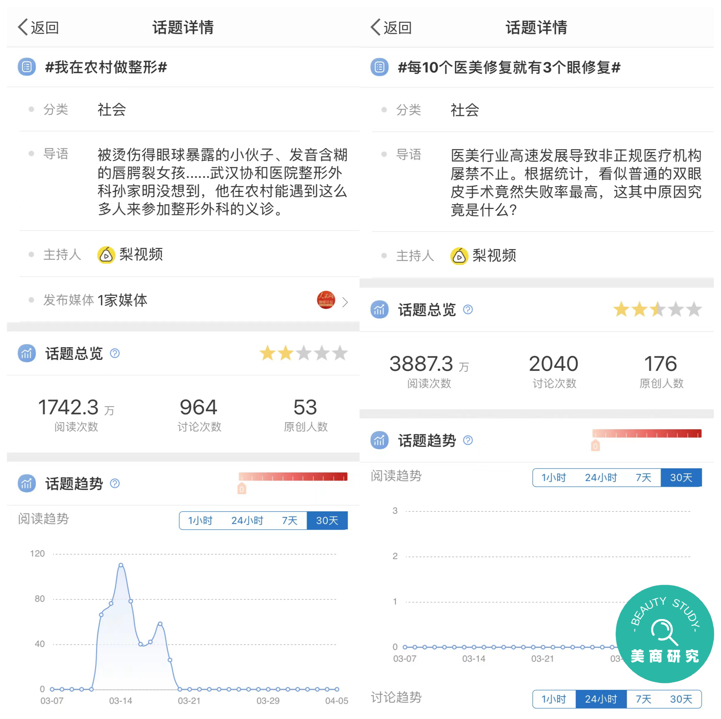 如前述文章所述,对于中国医美行业起到转折型推动作用的“网红小冉抽脂手术后感染死亡事件”就是因为连续十几天的热搜,引发媒体的反复报道,最终加快了中国医美行业监管的进程。