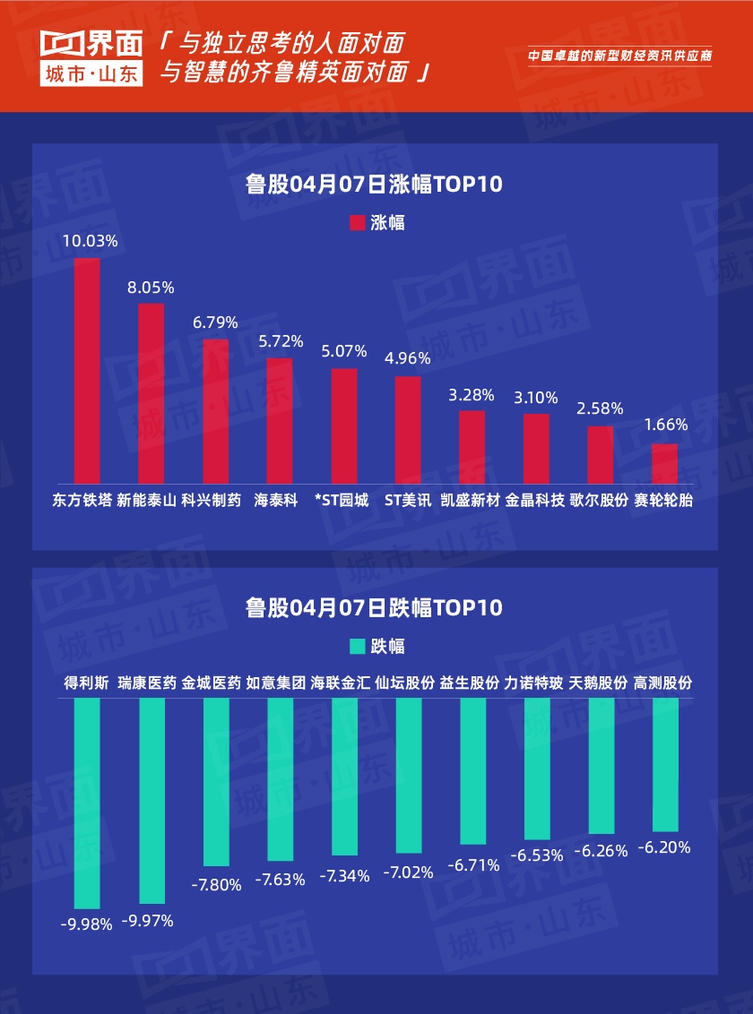 4月7日,山东省内沪深股票有33只个股上涨,232只个股下跌;总市值过千亿的有万华化学(600309)、海尔智家(600690)、兖州煤业(600188)、歌尔股份(002241)、潍柴动力(000338)、青岛啤酒(600600)、中航沈飞(600760)共7家,500亿-1000亿的共有4家,分别是山东黄金(600547)、华鲁恒升(600426)、华熙生物(688363)、中泰证券(600918)。