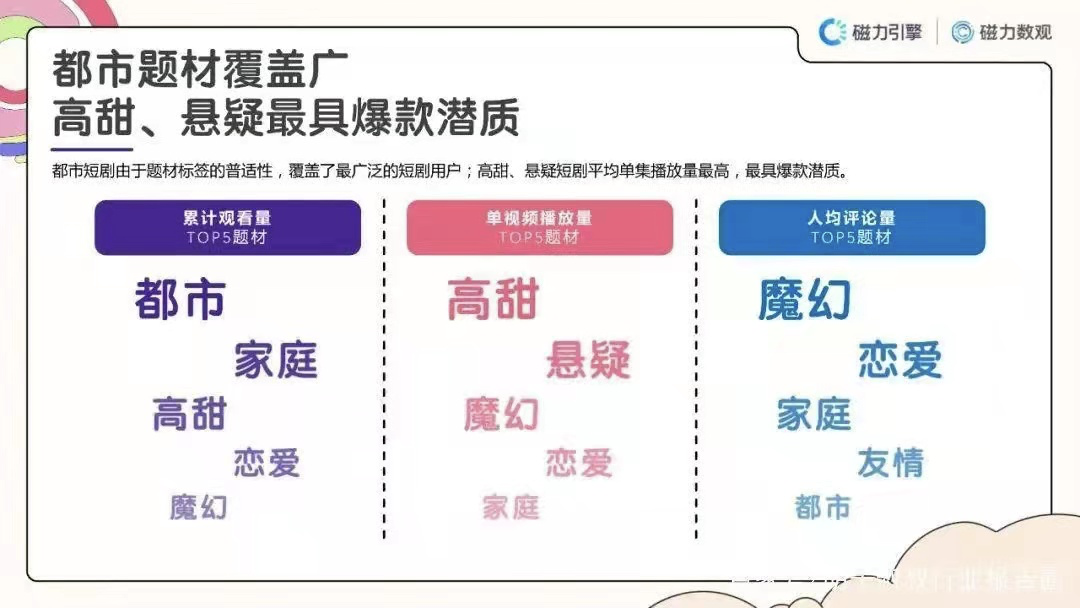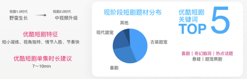至于内容的选择,不同平台有自己的风格和调性。优酷剧集中心总经理谢颖就曾在其“内容开放平台·短剧私享会”上表示,优酷微短剧瞄准的用户群体是24岁以下的年轻用户,主打搞笑喜剧、奇幻脑洞、热点话题三条主赛道。
