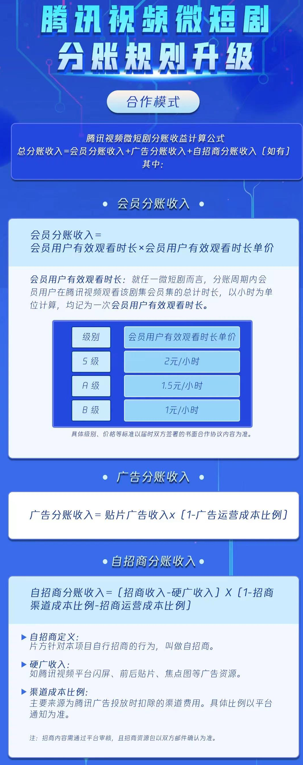 优酷的分账形式包括“会员+广告分账”和“流量分账”,腾讯在线视频的分账模式包括会员分账收入、广告分账收入、单点付费收入、自招商分账收入;快手的加强版“星芒计划”根据粉丝量级和播放量提高创作者的分账权益,抖音的“新番计划”也采取了类似的分账模式。