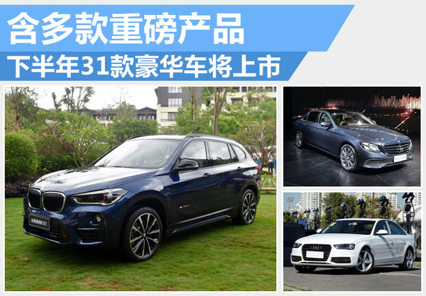豪华品牌下半年31款新车将上市车企名称车型级别上市时间奔驰国产全新E级长轴版中大型车秋季GLC Coupe中型SUV下半年GLA紧凑型SUVSLC敞篷版跑车宝马新款3系中型车9月国产X1混动版紧凑型SUV12月新款3系GT中型车下半年7系混动版大型车新款i3小型车之诺60H紧凑型SUV奥迪RS6 Avant高性能中大型车7月RS 7 Sportback PerformanceR8 V10 Coupe Performance跑车Q2小型SUV年底A4 Allroad中型车A6L e-tron中大型车新一代A5中型车Q7 e-tron中大型SUV下半年全新A4L中型车捷豹国产XFL中大型车路虎新款揽胜中大型SUV沃尔沃S90中大型车11月凯迪拉克CT6 PHEV下半年林肯MKZ中型车7月18日Continental中大型车11月雷克萨斯新款IS中型车讴歌国产CDX紧凑型SUV7月29日英菲尼迪QX30年底新款QX60中大型SUV下半年新款Q70L中大型车新款QX70中大型SUV制表:网通社 Internet Info Agency