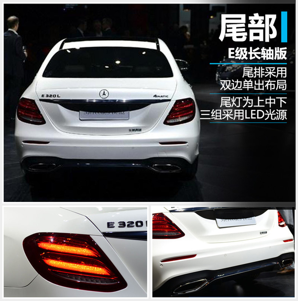 大灯部分,全新E级延续家族“四眼”设计基因,采用84颗高性能LED光源,在不同路况实现最精细化控制的光束分布。全新E级的尾部更加圆润,在与S级相似的尾灯造型。