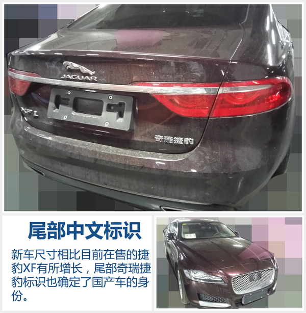 从谍照可以看出,XFL车身前部将与标准轴距版基本保持一致。新车前脸整体呈现X形状,棱角线条处理的更加立体、细腻,全新设计的大灯则更为精致。从侧面尾部来看,新车尺寸相比目前在售的捷豹XF有所增长,而这也是在原车型基础上进行轴距加长后最明显的变化。另外,尾部奇瑞捷豹标识也确定了国产车的身份。