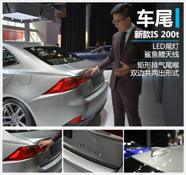 雷克萨斯新款IS的尾部设计也同样极具特点,朱江表示:“老款L型灯带式尾灯为三条平行式直线设计,而新款IS尾灯带采用爆炸性向上的设计,使车尾视觉效果更加醒目。”这种设计风格甚至用夸张来形容也不为过,让人瞬间感觉到雷克萨斯在设计风格上相比老款的变化,使新款IS车尾部分的可辨识度变得非常高。