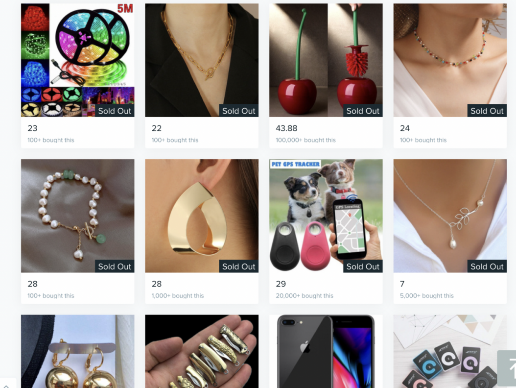 打开Wish,回答完性别和年龄的提问,迎面而来整页商品瀑布流。这些商品图片很难称得上有美感,但胜在真实直白,卖点清晰。