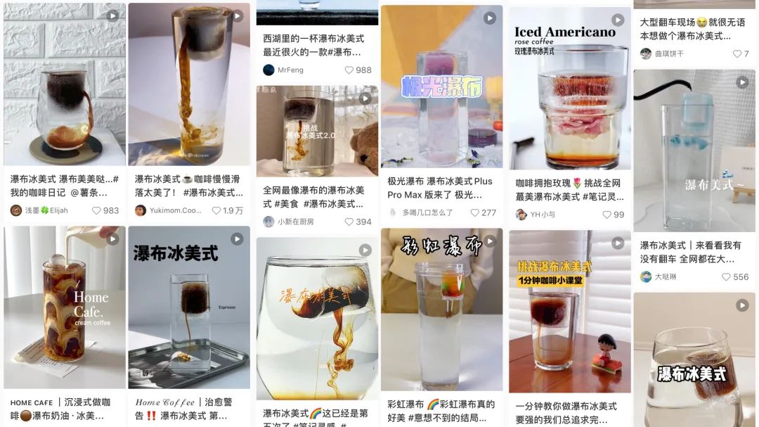 西湖荷花咖啡热度未消,豆腐脑拿铁、咸菜美式就轮番上场;最近一个瀑布冰美式的玩法,又引得全网效仿。