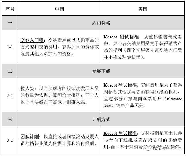 二、 中美传销认定标准对比