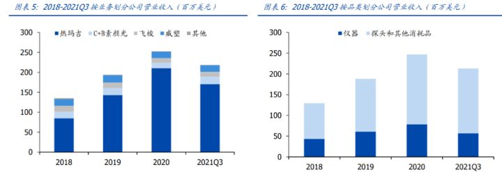 公开数据显示,2021年Q3 索塔公司热玛吉业务营业收入为 1.70 亿美元,同比上升 21.92%,而公司旗下的素颜光/飞梭/威塑营业收入仅为 0.19/0.12/0.17 亿美元。