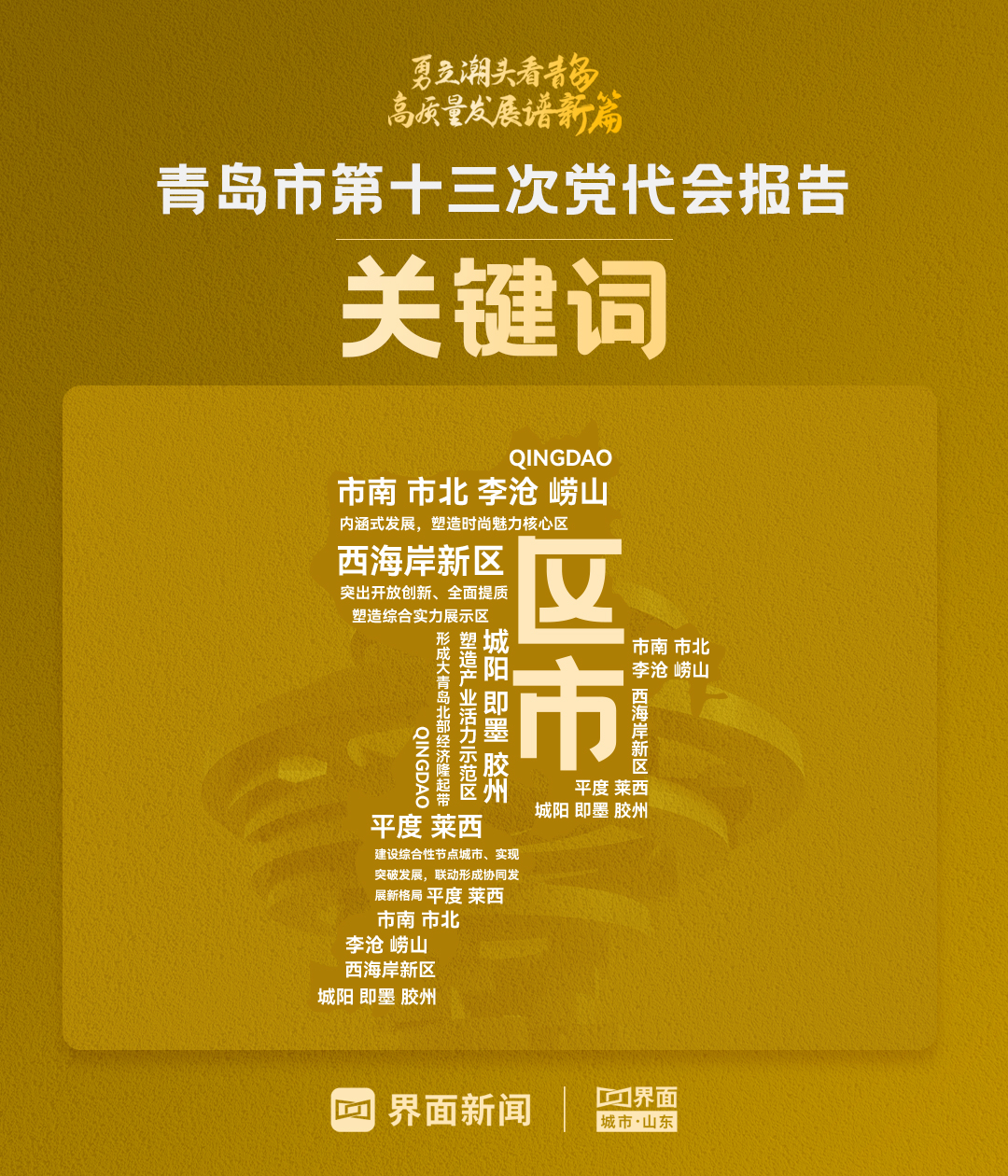青岛市第十三次党代会报告中的12个关键词