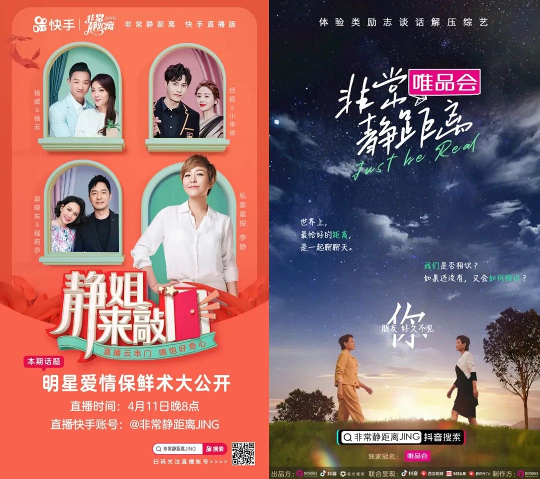还有像国内曾经王牌的娱乐访谈节目《非常静距离》,面临着模式老化的困扰,在卫视游走了一圈之后,最终还是向短视频平台抛去了橄榄枝。节目先是与快手推出了“云串门”访谈《静姐来敲门》,后又借抖音重回大众视线,定位为体验类励志谈话解压综艺。
