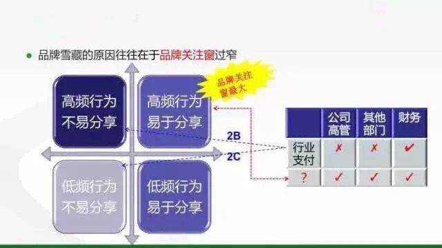 不难看出,第一象限做容易做好品牌,但是处于第一象限的行业或品类是非常少的,这就先天决定了能够很容易地做好口碑与知名度的企业相应较少。这个时候,就需要运用一个叫做“拉大品牌关注窗”的方法。拿我自己打比方,我执笔写了一本书——《看见未来,改变互联网世界的人们》,看见未来是罗振宇起的,改变互联网世界的人们是吴晓波老师起的,这本书出版有什么独特的意义呢?我是做易宝支付的,如果我只是谈支付,基本上很少有人有兴趣跟我谈,因为支付不属于一个高端的东西;但如果我能聊互联网,互联网+、互联网营销、互联网金融,这些都是被人高频关注的话题,而且很容易分享。谈支付肯定没人理我,但当我谈互联网+、互联网营销的时候,都是别人抢着跟我谈,邀请我去谈,甚至出钱请我去,这就叫做拉大品牌关注窗。很多在自媒体时代做起来的品牌,都用这个策略。
