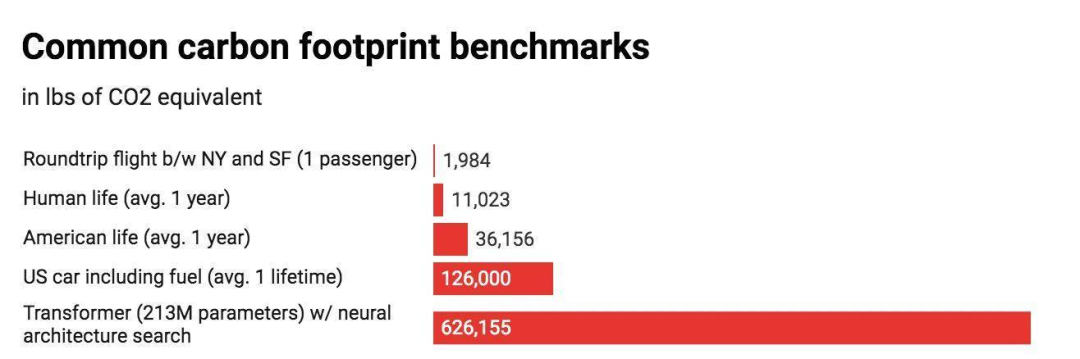当前产业智能化的一大瓶颈是高成本的算力。庞大的深度神经网络系统需要大量计算资源来处理复杂任务。一份来自马萨诸塞大学的研究显示,常见的几种大型 AI 模型,训练过程会排放超过 626000 磅二氧化碳,几乎是普通汽车寿命周期排放量的五倍。