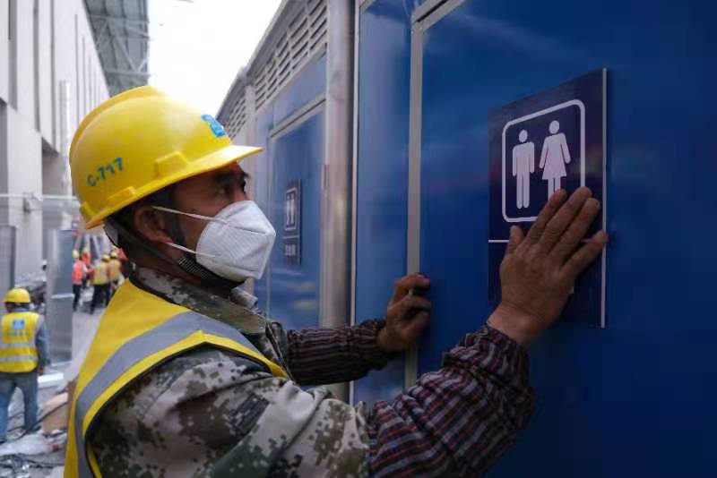 “必须确保施工现场疫情防控不放松,我们专门设立了防疫组,为工作人员配备防疫物资,每日进行核酸检测,定时消毒。”中建二局国家会展中心方舱医院项目现场片区负责人苏宪新说,此次改建工程中,除了室内床铺的布设外,大量工作集中在室外的污水排放系统和通风系统的建设上。作为方舱医院,整个场馆的通风和排水均重新建设,以确保安全。