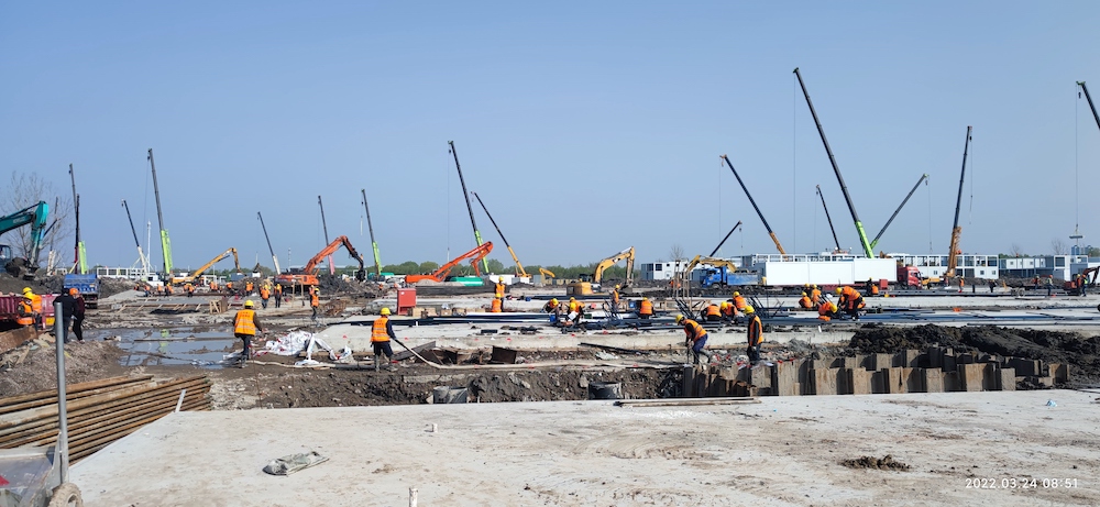 3月23日,现场管理人员已突破200人,有1500名建设者投入建设。截至4月4日,现场管理人员已突破250人,现场施工作业人员近4000人,各类大型机械设备百余台。