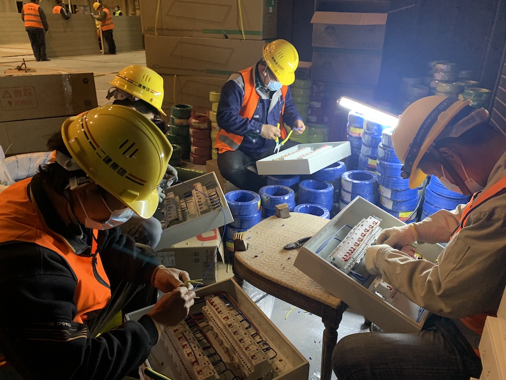 29岁的陈冠是最早到达的工人之一,他带领工友们负责3号馆第三区域2000张床位的建设。“12个小时倒一班,累了就睡一会儿,起来就继续干……”他说。