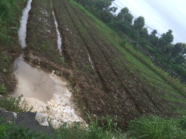 四五月,娄尤伯在田里播下玉米种,六月初开始的持续大雨使得庄稼长得格外慢,田里的玉米目前仍是小玉米苗。当然,这并非最坏的情况。