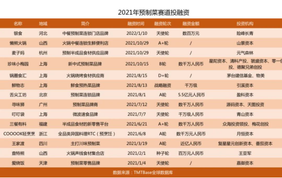 据TMTBase数据显示,2021年有14个预制菜品牌获得了融资,就此可以看出资本对预制菜产业也十分看好。