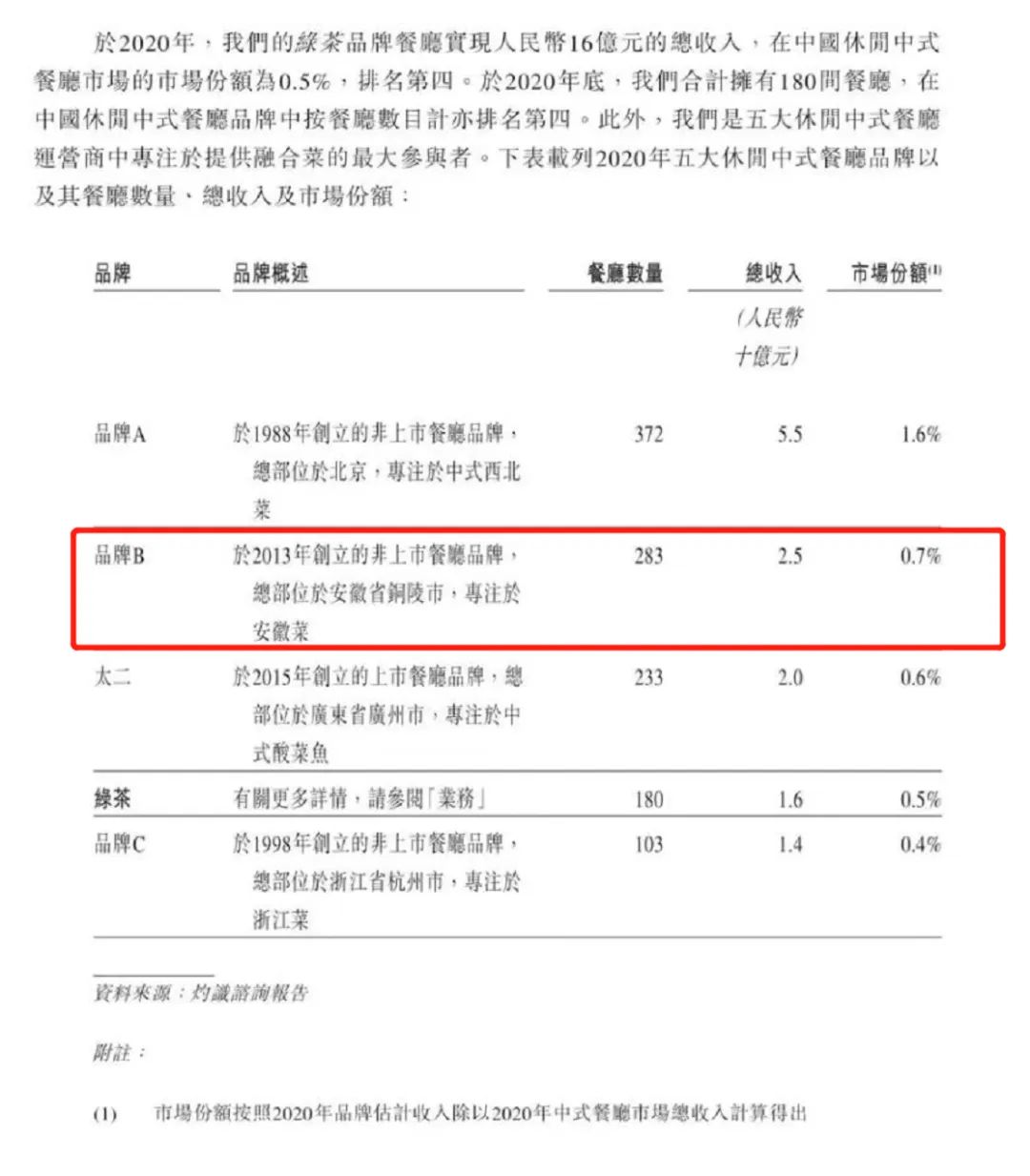 在绿茶近日提交的招股书中,我们不难发现休闲中式餐厅品牌中,除了大家熟悉的西贝、太二、外婆家外,还有一家徽菜品牌——小菜园,牢牢占据第二位。