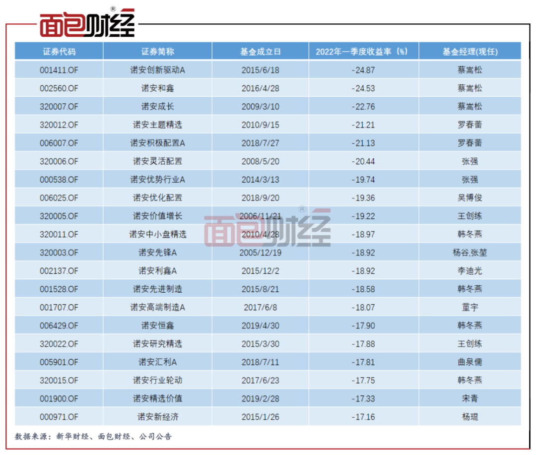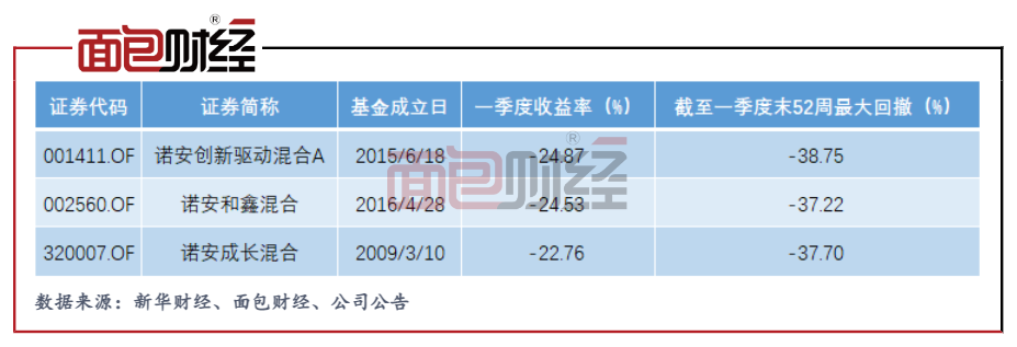 不仅是蔡嵩松的产品,诺安基金其他偏股型产品今年一季度也面临大幅回撤压力。