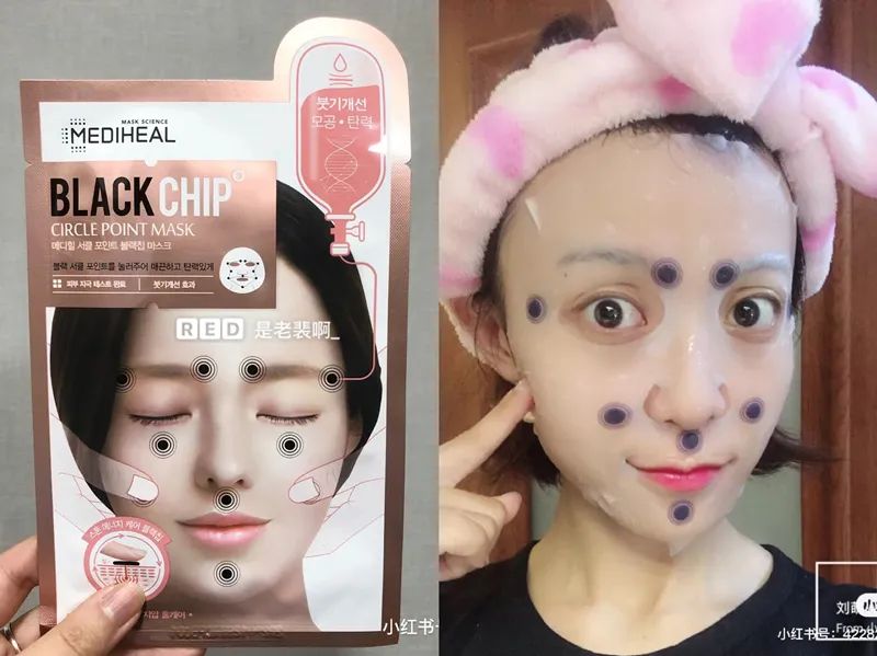 这款面膜上贴有磁石,对应脸部的穴位。品牌方宣称,这样的设计能够使消费者在敷面膜时做到按摩穴位,刺激面部循环。