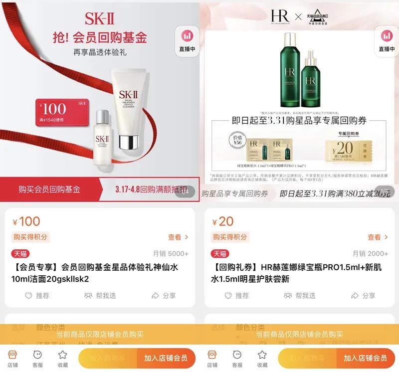 其他推出单独的小样产品售卖的还有SK-II、HR赫莲娜,官方旗舰店也仅限于会员购买,对消费者来说选择性不多。