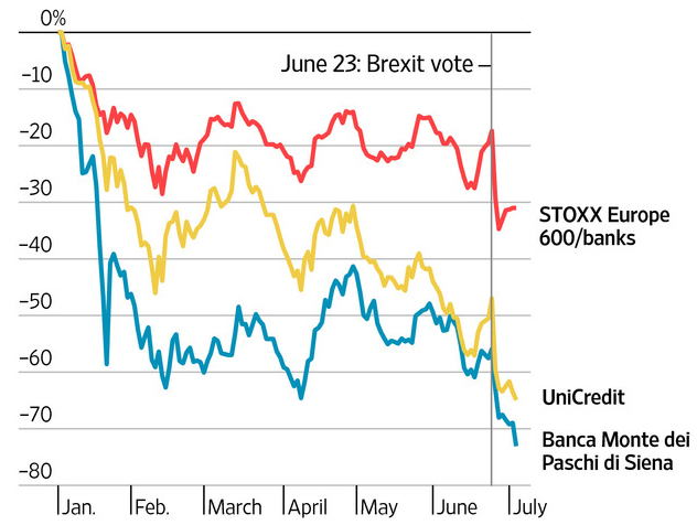 英国脱欧公投引发的诸多不确定性仍在发酵,但投资者焦虑的目光已投向欧洲大陆另一端。在那里,意大利银行业的险情正在加剧,并成为欧元区内部最薄弱一环。