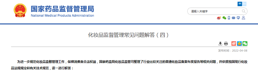另外,在此次的解答中,国家药监局表示,根据《条例》《办法》和化妆品注册备案相关法规规定,对不再生产、进口的产品,备案人可在备案平台主动申请注销。备案人主动注销产品既有利于维护消费者的知情权,同时提高了监管部门效率。申请主动注销的产品,如不存在违反法律法规的情形,备案信息注销前已上市的相关产品,可以销售至保质期结束。