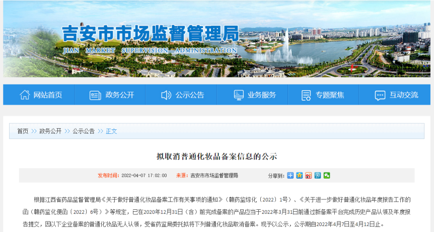 值得注意的是,由于旧产品无人认领,近期江西省3个下辖市共计有231个产品取消备案,化妆品的大清洗开始了。