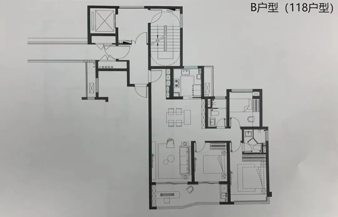在户型方面,打造了建面约110-140㎡的产品。其中,16-19号楼户型面积均约140㎡,其余楼栋中间户约110㎡,边户户型有118、128㎡两种户型。