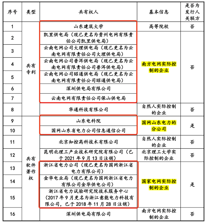 值得注意的是,国网智能共有软件著作权的共有权人部分为公司的关联方,即南方电网实际控制的企业、国网山东电力分公司以及国家电网实际控制的企业。