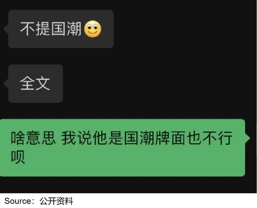 到了今年,更是对“国潮”避之不及。比如,有网友在社交平台吐槽,其在与李宁合作时,原本将李宁定位为“国潮之光”,却被要求:
