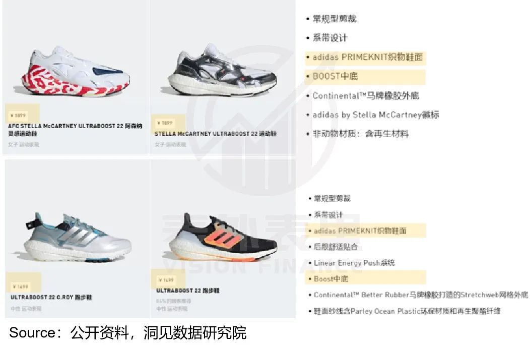 比如,阿迪达斯2013年推出的boost科技,起初用于ultraboost、椰子等明星鞋款上。之后该技术下放,目前从跑鞋到拖鞋,价位从500—2000都有boost科技相应的布局,从销量看,很多都卖得不错。