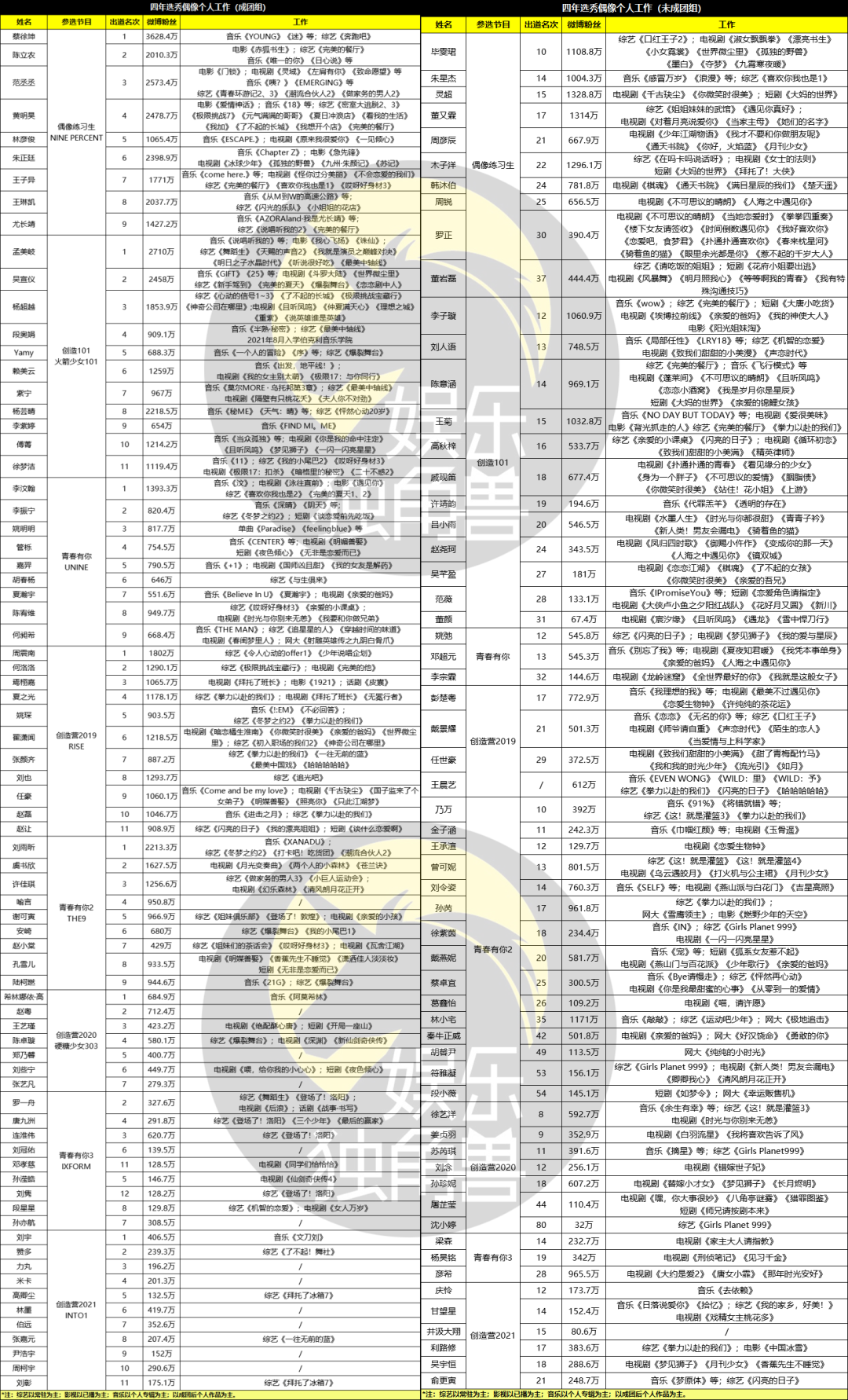 出道组未能参与影视拍摄的,多为节目出道后限定团尚未解散的秀人,以及受语言影响的外籍秀人。如此看来,节目出道后限定18-24个月的“花路”,似乎在某程度上影响了秀人“转业”的速度,而在这个变化万千的影视市场中,大部分终将演员路上见的秀人,早一步入圈听来总比晚一步来得占优。