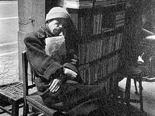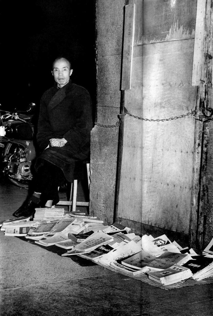 傅月庵讲述,周公的小书摊,一摆就是二十一年。“所谓书摊,就是一面钉起来的三尺高、两尺宽的书架,上面有四百多本新诗、哲学美学书籍。周公坐在拾到的椅子上,或做梦、写字、作诗、卖书;或抛下书摊,跟人去玩,随买书的人把钱扔下。晚上没有床铺睡,他就睡门板;有店面老板叫他去看店,他就睡店面。”傅月庵笑说,“这个常年身着长袍,枯瘦羸弱的人和他的书摊成为台北市的一景,几乎每个人都会认识他。”书摊一直摆到1980年,“那时他突然胃出血,手术割去四分之三的胃,才不再摆书摊,专心写诗。”