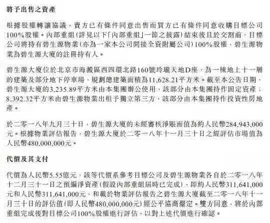 2020年8月,碧生源间接全资附属公司北京澳特舒尔向正嘉有限公司出售北京申惠碧源云计算科技有限公司100%股权,交易总代价4.78亿元,交易完成后,碧生源获得收益0.8亿元;2021年11月,碧生源再次出售位于上海普陀区的8处房屋及相应的土地使用权。