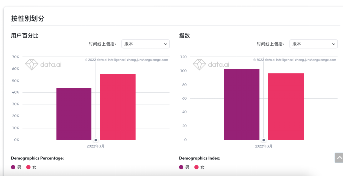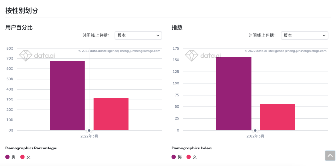 《AOV》用户性别分布;数据来源:data.ai