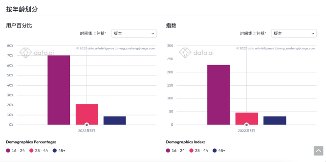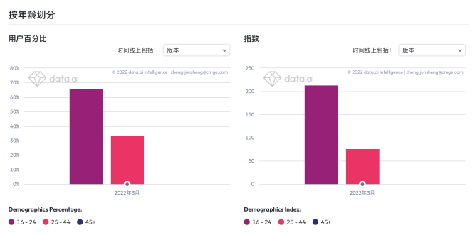 《AOV》用户年龄层分布;数据来源:data.ai