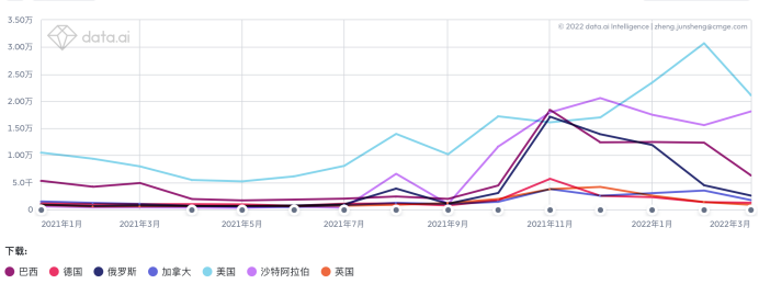 《AOV》下载量情况;数据来源:data.ai