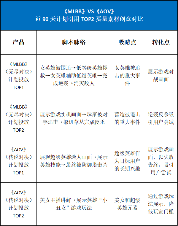 通过《MLBB》和《AOV》的对比,DataEye研究院发现两者在营销思路上的差异点,同时也展现了一些营销思路。