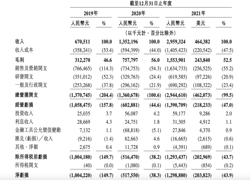 根据港股招股书,知乎在2019年、2020年、2021年营收分别为6.7亿元、13.52亿元、29.59亿元;毛利分别为3.12亿元、7.58亿元、15.54亿元。与此同时,知乎2019年、2020年、2021年经调整亏损分别为8.24亿元、3.37亿元、7.5亿元。